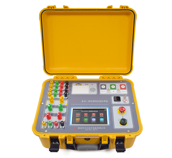 该仪器为大容量锂电池供电的五合一配电变压器测试系统(直阻+变比+绝缘电阻+能效等级+回路电阻),仅需要一套设备,可以完成五个项目的测试,不需要频繁的拆接测试线。
