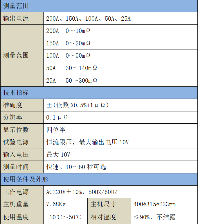 3、测量范围:0-20mΩ测量范围。